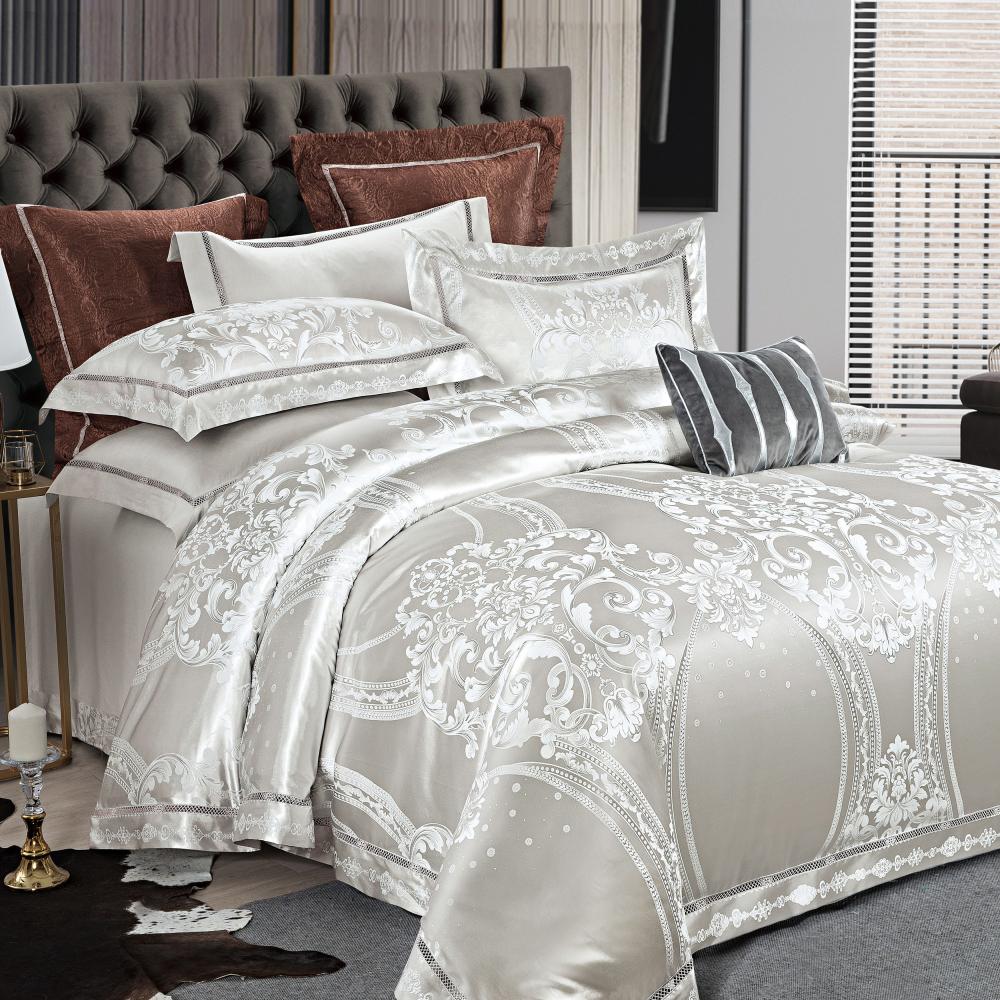 مفرش مزدوج جاكار - 6 قطع - سلسلة إلورا - رمادي فاتح