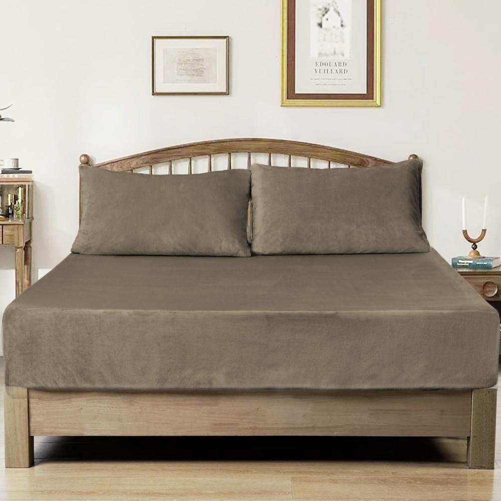 طقم شراشف مخملي ذو وجه واحد مزدوج - 3 قطع - رمادي داكن