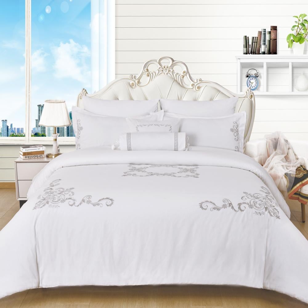 مفرش مفرد مطرز - 4 قطع - سلسلة لومينا - أبيض