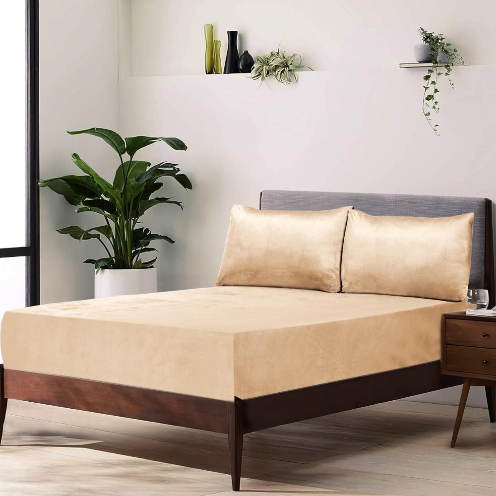 106طقم شراشف مخملي ذو وجهين من ماركة ماستر هوم المميزة. يتميز بقماش المخمل الفاخر الذي يوفر لك شعورًا بالراحة والفخامة، مما يرفع تجربة نومك إلى آفاق جديدة. كما أن المخمل يمتاز بخصائص عزل حراري استثنائية، مما يجعله الخيار المثالي للأشهر الباردة.