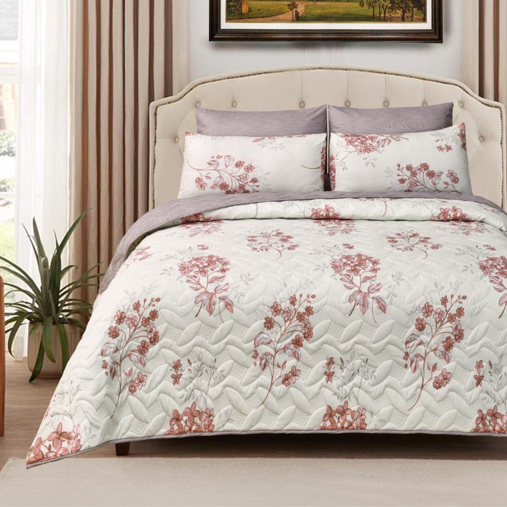 مفرش مضغوط منقوش مزدوج - 6 قطع - سلسلة فلورين - وردي